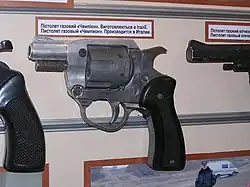 A gas pistol is a non-lethal weapon used for self-defense and other purposes. It is typically a close-to-exact replica or conversion of a traditional handgun made to be able to fire blanks or tear gas cartridges. Effective range is up to 4.5 metres depending on caliber. For legal purposes, various techniques are used during manufacture/conversion to prevent the use of live ammunition, such as using calibers exclusive to gas cartridges, welding obstacles into a non-removable barrel and using malleable metal alloys. Gas pistols are prevalent in European countries with strict gun control laws. Gas pistols are also used in weapons training, and as starting pistols, flare guns, and movie props.