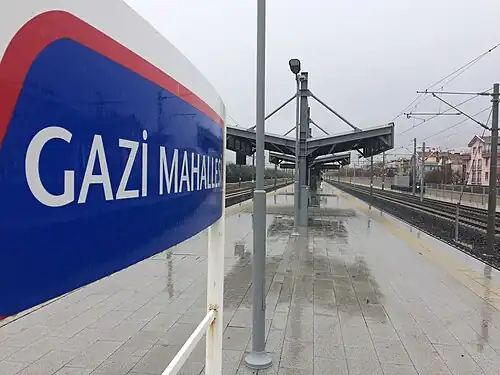 Gazi Mahallesi railway station (Turkish: Gazi Mahallesi istasyonu) is a railway station in Ankara, Turkey, currently being rebuilt. The station was a stop on the Ankara suburban from 1972 to 2016 when it was closed and demolished shortly after, in order to rebuild and expand the railway. Construction of the new station began in 2017 and is expected to open on 12 April 2018.[1]