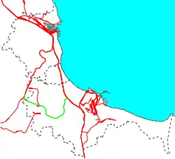 The railway from Gdańsk Wrzeszcz to Gdańsk Kokoszki (which later formed the route of the Pomeranian Metropolitan Railway) was opened on 1 May 1914 as part of the Gdańsk Wrzeszcz–Stara Piła railway. This line was destroyed in March 1945 by German forces defending the Gdańsk area.[6] The destruction of viaducts on the Gdańsk Wrzeszcz–Kiełpinek section (over Grunwaldzka Street, Wit Stwosz Street, Polanki Street, Słowacki Street, and Dolne Migowo Street) made reconstruction extremely costly.[6] Additionally, its reconstruction was deemed unfeasible due to the line's primarily local character, as it only connected Gdańsk with Kartuzy. Despite the efforts of a social committee advocating for its reconstruction, the line was never rebuilt.[6]