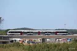 A contract with the contractor was signed on 30 April 2021.[42][43][44] Work began on 15 June between the Gdańsk Brętowo and Jasień railway stations.[45] On the night of 8–9 November 2022, the first electric train, an EN57ALd electric multiple unit, ran on the Pomeranian Metropolitan Railway between Gdańsk Wrzeszcz and Gdańsk Kiełpinek.[46] The electrification of the Pomeranian Metropolitan Railway lasted until June 2023,[2] and on the night of 9–10 June 2023, the final test run took place between Gdańsk Wrzeszcz and Gdańsk Port Lotniczy.[47] On 12 June, the first scheduled electric train entered service on the line.[48][49]