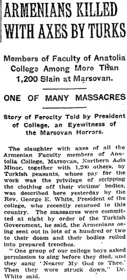 1. ^ a b c d e f g h i j "Armenians Killed with Axes by Turks". New York Times Current History Edition: "The European War". 13. 1917.