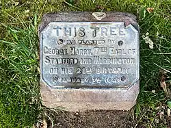 Plaque at the tree he planted at Dunham Massey on his 21st birthday