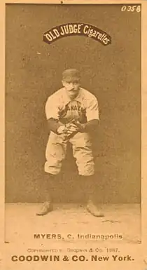 George D. Myers (1860-1926) was a Major League Baseball player. He played six seasons in the majors, from 1884 until 1889, for the Buffalo Bisons, St. Louis Maroons, and Indianapolis Hoosiers.