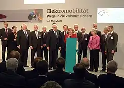 The foundation for the promotion of electric mobility in Germany has been set with the Integrated Energy and Climate Programme of the Federal Government decided in 2007.[1] Concrete measures were proposed in connection with the National Strategy Conference on Electromobility at the end of 2008.[2] First fundings followed under the second economic stimulus package in early 2009. Before that, the industry had formed a so-called Innovation Alliance "LIB 2015". This industry consortium committed to invest 360 million euros for research and development of lithium-ion batteries.[3]