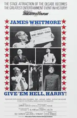 Give 'em Hell, Harry! is a biographical play and 1975 film, written by playwright Samuel Gallu. Both the play and film are a one-man show about former President of the United States Harry S. Truman. Give 'em Hell, Harry! stars James Whitmore, and was directed by Steve Binder and Peter H. Hunt.