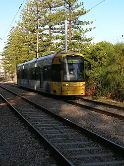 City Bay Tram approaching Glenelg East Stop