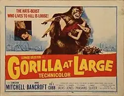 Gorilla at Large is a 1954 American horror mystery film made in 3-D. The film stars Cameron Mitchell, Anne Bancroft, Lee J. Cobb and Raymond Burr, with Lee Marvin and Warren Stevens in supporting roles. Directed by Harmon Jones, it was made by Panoramic Productions, and distributed through 20th Century Fox in Technicolor and 3-D.