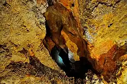 In 1935, the Civilian Conservation Corps and the Works Progress Administration made an agreement with Peck to build a new entrance to the Caverns. In 1962, another entrance was built by blasting a 210-foot (64 m) shaft into the limestone and installing a large elevator. At that time, the natural entrance was also sealed off at the request of the Hualapai Indians as it was considered a sacred burial place.