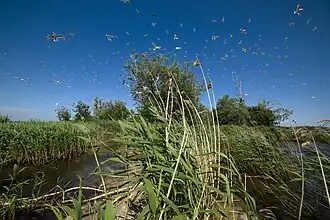 The Grand Meadow National Nature Park (Ukrainian: Національний природний парк «Великий Луг», romanized'Velykyi Luh') covers historic steppe terrain in southeast Ukraine. It is on the south bank of the Dnieper River's Kakhovka Reservoir, which was created by the Dnieper Hydroelectric Station. The meadows and reed beds on the shore support one of the largest transmigration spots for birds in Eastern Europe.[1] The park is in the administrative district of Vasylivka Raion in Zaporizhzhia Oblast.[2]