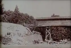 Building of wooden bridge over Cazenovia Creek