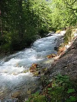 The Guisane is a river in the Hautes-Alpes department, Provence-Alpes-Côte d'Azur region of France, a subtributary of the Rhône and tributary of the Durance (in Briançon). It takes its source in Le Monêtier-les-Bains at the Col du Lautaret. It is 27.7 km (17.2 mi) long.[1] Its drainage basin is 200 km2 (77 sq mi).[2] It has an average discharge of 5.19 m3/s (183 cu ft/s) in Saint-Chaffrey.