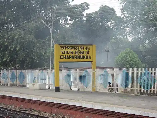 ![]() Chaparmukh Junction an important railway station on Guwahati–Lumding section | |||||||||||||||||||||||||||||||||||||||||||||||||||||||||||||||||||||||||||||||||||||||||||||||||||||||||||||||||||||||||||||||||||||||||||||||||||||||||||||||||||||||||||||||||||||||||||||||||||||||||||||||||||||||||||||||||||||||||||||||||||||||||||||||||||||||||||||||||||||||||||||||||||||||||||||||||||||||||||||||||||||||||||||||||||||||||||||||||||||||||||||||||||||||||||||||||||||||||||||||||||||||