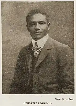 Hégésippe Jean Légitimus was born in Pointe-à-Pitre, Guadeloupe on 8 April 1868 and died before the end of World War II in Angles-sur-l'Anglin, France, on 29 November 1944. He was a socialist politician from Guadeloupe who served in the Chamber of Deputies from 1898–1902 and 1906-1914.[1][2]