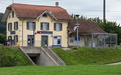 Hüttlingen-Mettendorf railway station is a railway station in the Swiss canton of Thurgau and municipality of Hüttlingen. The station is located on the Winterthur–Romanshorn railway line. It is an intermediate stop on Zurich S-Bahn services S24 and S30.[1][2][3]