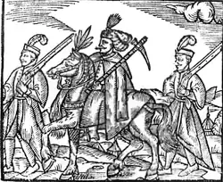 The etymology of the word hajduk is unclear. One theory is that hajduk was derived from the Turkish word haidut or haydut 'bandit', which was originally used by the Ottomans to refer to Hungarian and Polish–Lithuanian Commonwealth infantry soldiers. Another theory suggests that the word comes from Hungarian hajtó or hajdó (plural hajtók or hajdók) '(cattle) drover'.[6] These two theories do not necessarily contradict each other because the Turkish word haidut or haydut is adapted from the Hungarian hajtó or hajdó, just as many Slavic words were adapted from Turkish in what is known as Turcizam or Turkification.[4][5][7]