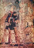 The earliest visual depictions of hanbok can be traced back to the Three Kingdoms of Korea period (57 BCE to 668 CE).[65][66][67][68] The origin of ancient hanbok can be found in the ancient clothing of what is now today's Northern Korea and Manchuria.[69] Some hypothesize that the hanbok of antiquity can trace its origin to nomadic clothing of the Eurasian Steppes (Scythian clothing), spanning across Siberia from western Asia to Northeast Asia, interconnected by the Steppe Route.[70][71][72] Reflecting its nomadic origins in western and northern Asia, ancient hanbok shared structural similarities with hobok type clothing of the nomadic cultures in East Asia, designed to facilitate horse-riding and ease of movement,[23][73][74] such as the use of trousers and jacket for male clothing and the use of left closure in its jacket.[75] However, although the ancient hanbok reflects some similarity with the Scythian clothing, numerous differences between the two types of clothing have also been observed which led associated professor Youngsoo Chang from the Department of Cultural Properties in Gyeongju University in 2020 to suggest that the theory about Scythian clothing being the archetype of the ancient hanbok, a theory accepted as common knowledge in Korean academia, having to be revised.[75] It is also important to note that the Goguryeo tomb murals were primarily painted in two geographical regions: Ji'an (集安) and Pyongyang.[76]: 15  The former is the second capital of Goguryeo while the latter is the third capital of Goguryeo from the mid-fourth to the mid-seventh centuries.[76]: 15  While the mural paintings found in Ji'an typically shows the characteristics of Goguryeo people in terms of their customs and morals; those from Pyeongyang typically show the cultural influences of the Han dynasty, including Chinese-style clothing, as the Han dynasty had governed this geographical region for approximately 400 years.[76]: 15