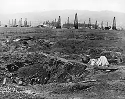 It was not until 1901 that the bones on the Hancock Ranch were thoroughly studied by William Warren Orcutt, a prominent Los Angeles geologist and petroleum pioneer.[10] who examined bones he personally collected.[7] Orcutt collected bones of saber-toothed cat, dire wolf, ground sloth and other fossils from the site, bringing the attention of the scientific community to the value of the La Brea Tarpits in understanding the late Pleistocene fauna and flora of North America. Orcutt eventually donated his fossil collection to John Campbell Merriam of the University of California.[11]