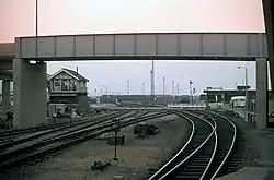 The area was controlled by three signal boxes using semaphore signalling. From west to east these were: