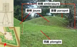 20. ^ In Japan, other examples of bastion fort equipped with a banquette can be confirmed at 四稜郭 (Shiryokaku) and 楠葉台場 (Kuzuha-Daiba).