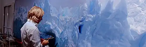 In 2017 Helmut Ditsch begins his biggest painting ever. On a 2 x 12 metres big canvas he paints the famous Argentinian glacier Perito Moreno.