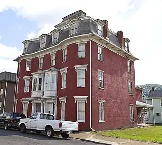 Henry Gassaway Davis House, also known as the Knights of Pythias Lafayette Lodge, No. 3, and Calanthe Temple, No. 8, Pythian Sisters, is a historic home located at Piedmont, Mineral County, West Virginia. It was built in 1871, for U.S. Senator and vice presidential nominee Henry G. Davis (1823–1916). It is a three-bay, four-story Second Empire style brick duplex. It has a simple mansard roof and 12 gabled pedimented dormer windows on the concave slopes. The front façade features dual stone-and-slate stairs, ascending to two centered paired six-by-nine-foot framed one-story entry porches.[2]