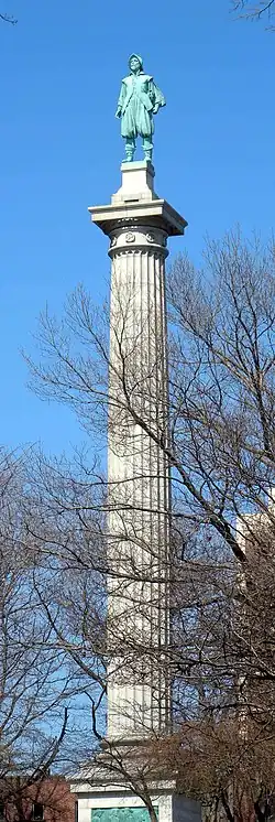 A monument to Hudson to Hudson was planned in Spuyten Duyvil, Bronx; a site was donated to the city and local businesses raised funds for work to begin in 1909. The project encountered multiple delays, but in 1912 a 100-foot (30 m) Doric column, designed by Walter Cook of Babb, Cook & Welch,[2][3] was set in place t the park's highest elevation. Shortly after, funds for the project, which had been raised by subscription, ran out. Additionally the sculptor chosen to create the "Heroic statue of Henry Hudson" to stand atop the column, Karl Bitter, died in 1915, having completed only a partial plaster model of his planned "Heroic statue of Henry Hudson". The project stalled. [2][4]