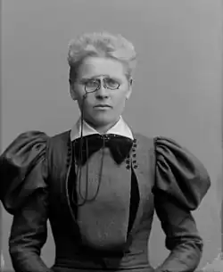 Käkikoski was born Hilda Maria Sjöström in Lapinjärvi in 1864. She was described as a tomboyish child growing up in the countryside. She moved to Helsinki by herself at the age of 14 to attend a girls' high school with a scholarship. There, she cut her hair short and changed her Swedish surname to Käkikoski, the Finnish surname of her neighbours.[1][2] After finishing school, she worked as a home tutor until 1888 when she enrolled in university; she completed a PhD in Finnish and Nordic history in 1895. She went on to become a teacher at a Helsinki school, teaching classes in history and the Finnish language from 1891 until 1902.[1] Her students found her fascinating due to her unconventional habits and interests, such as being a vegetarian, gymnast, cyclist, wearing masculine clothing and having an assertive demeanor.[3]