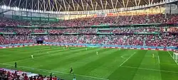 Nevertheless, the team defeated strong Nigeria 1–0 with the goal of Youssef Msakni from outside the penalty area, despite the absence of Mondher Kebaier from the match due to his infection with the COVID-19 virus, and he was replaced by his assistant Jalel Kadri.[207] In the end, the team was eliminated from the quarter–finals against Burkina Faso after a 0–1 defeat.[208] After this disappointing participation, Mondher Kebaier was dismissed from coaching the national team three years after his appointment and the appointment of his assistant Jalel Kadri. as his successor. Meanwhile, the draw for the third round of the African 2022 FIFA World Cup qualification was held, as it resulted in a home–and–forth match against Mali. In the first leg match at the Stade du 26 Mars in Bamako, Tunisia won out of the rules 1–0 thanks to Mali's Moussa Sissako's own goal after pressure from Youssef Msakni,[209] As for the return match at the Stade Hammadi Agrebi in front of 50,000 spectators, it ended in a 0–0 draw,[210] so that the Tunisian team qualified for the FIFA World Cup for the sixth time in its history.[211]