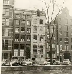 Warehouse and office of Holland on the canal Herengracht 149 in Amsterdam, March 1964. Nr. 149 is the "light" building, some roles of carton are pulled up.