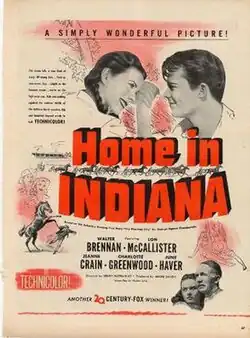 Home in Indiana is a 1944 Technicolor film directed by Henry Hathaway. The film, starring Walter Brennan, Lon McCallister, Jeanne Crain, June Haver and Charlotte Greenwood, is based on the novel The Phantom Filly by George Agnew Chamberlain (1879–1966). The film was remade in 1957 as April Love.