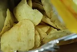Honey Butter Chips (Korean허니버터칩) is a brand of fried potato chips manufactured by Haitai Calbee and sold in South Korea. The snacks were first made available in August 2014, and they are renowned for their rise to popularity through social media viral marketing from late 2014 to early 2015. The product was created by Korean confectioner Haitai in a joint effort with Japanese snack manufacturer Calbee. This snack was so popular that it created a trend called the Honey-Butter Craze among South Koreans.[1]
