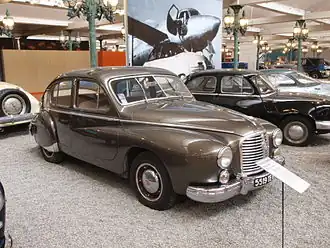 The Grégoire’s commercial performance was affected by the company's 30-year record of producing worthy but conservative saloons. High development costs had to be amortised over the number of cars sold, and the low sales level led to a high retail price which, in turn, depressed sales further. By 1952 the Grégoire was retailing for twice the price of the similarly sized six-cylinder Citroën Traction 15CV.[1] An additional challenge came from government taxation policies during the early 1950s in the French market, which heavily penalised larger cars. At the 1952 Paris Motor Show, it was obvious that several French luxury auto-makers like Delahaye clearly were in trouble. It was noted that for the Grégoire, despite its upmarket aspirations, the company was only able to distribute a very skimpy brochure, provided without any colour pictures.[1] By 1953 output had slowed and only about 40 were produced,[1] and by the time production ceased towards the end of that year, only 247 Hotchkiss Grégoires had been built; of these 235 had been four-door saloons.