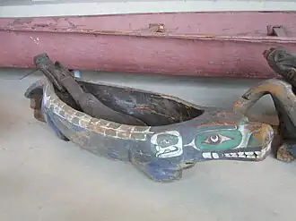 A house dish or feast dish (Kwakʼwala: Lukwalil) is a very large wooden dish, often ornately carved and painted in various human or animal figures, used in First Nations ceremonies in British Columbia.[1][2]