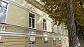 The facade of the house decorates the modeled drawing. The porch of the house is created with three columns. The house is the two-storeyed, ground first-floor. All facade occupies a squared pediment which settles down over the crowning eaves with croutons. Windows of the first floor decorate capstones. Over windows of the second floor the vegetable ornament is created, and under windows — false rail-posts are made.[2]