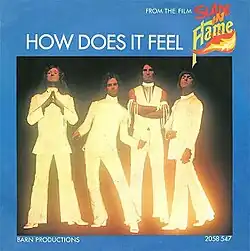 "How Does It Feel" is song by the British rock band Slade, released in 1975 as the second single from the band's first soundtrack album and fifth studio album Slade in Flame, in promotion of the film of the same name.[1] The song was written by lead vocalist Noddy Holder and bassist Jim Lea, and produced by Chas Chandler. It reached No. 15 in the UK, remaining in the charts for seven weeks.[2]