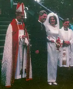 Bishop Cruse (left) at a wedding in 1965, shortly after his elevation to the episcopate.