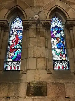 The bronze plaque which is beneath the stained glass panels which Hulda had installed in St Thomas’ Church, North Sydney, reads: