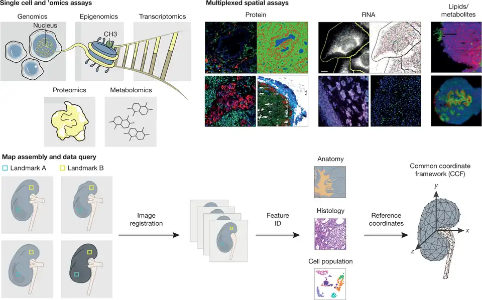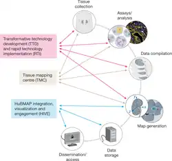 - ^ a b c Snyder MP, Lin S, Posgai A, Atkinson M, Regev A, Rood J, et al. (HuBMAP Consortium) (October 2019). "The human body at cellular resolution: the NIH Human Biomolecular Atlas Program". Nature. 574 (7777): 187–192. Bibcode:2019Natur.574..187H. doi:10.1038/S41586-019-1629-X. PMC 6800388. PMID 31597973.