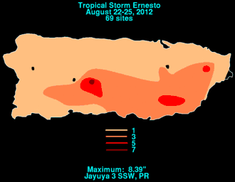Rainfall totals from Hurricane Ernesto in Puerto Rico