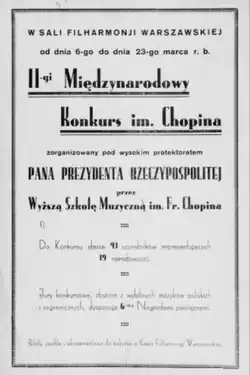 1. ^ a b c "II International Fryderyk Chopin Piano Competition". Fryderyk Chopin Institute. Retrieved 1 August 2021.