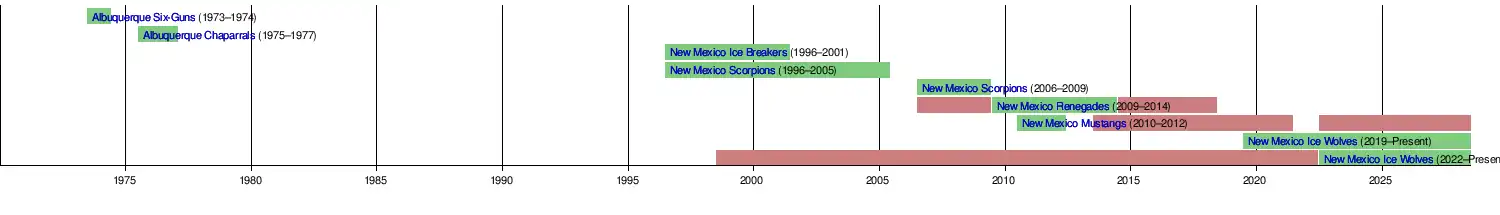 New Mexico Ice WolvesNew Mexico Ice WolvesNew Mexico MustangsNew Mexico RenegadesNew Mexico ScorpionsNew Mexico ScorpionsAlbuquerque ChaparralsAlbuquerque Six-Guns