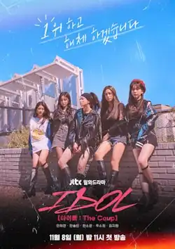 Idol: The Coup[3] (Korean: 아이돌: 더 쿠데타) is a 2021 South Korean television series directed by No Jong-chan and starring an ensemble cast featuring Ahn Hee-yeon, Ahn Sol-bin, Han So-eun, Chu So-jung, Kim Ji-won, Kwak Si-yang and Kim Min-kyu. Written by Jung Yoon-jung, it tells the story of a "failed" K-pop idol girl group who need just one shot at success for them to disband.[4] It aired from November 8 to December 14, 2021 on JTBC's Mondays and Tuesdays at 23:00 (KST).[5][6][7] It is also available simultaneously with Korea on iQIYI for streaming worldwide.[8]