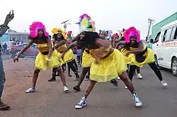 The parades and other events happen during the three official days of carnival.[5] The carnival kicks off in the morning on December 23 and stretches to the afternoon of the same day with procession/Parade in Otukpo[6] followed by migration from Otukpo to Apa between the afternoon and evening of the first day. Later in the evening of the same day is another segment known as burn fire and performances by music artists.[7]