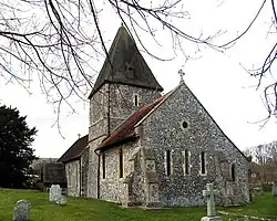 The parish church of St Nicholas is a Norman church and dates from the 12th century, although much was restored in the 19th century. It has an unusual arrangement of nave and chancel separated by the tower, possibly formerly at the crossing, though transepts and a north aisle have been demolished. It is a Grade I listed building.[4]