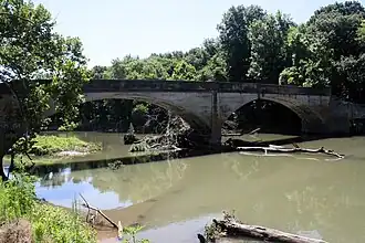 The Illinois River Bridge, also known as the Midway Bridge,[2] is a historic concrete arch bridge near Siloam Springs, Arkansas. It is located in Ozark National Forest, about 6 miles (9.7 km) east of Siloam Springs, at the end of Chambers Springs Road (which it formerly carried) south of United States Route 412. The bridge has two elliptical arch spans, each spanning 68 feet (21 m), with a total structure length of 139 feet (42 m). Built in 1922 by the Luten Bridge Company of Knoxville, Tennessee, it is one of a modest number of bridges of this once-popular and common type remaining in the state.[3]