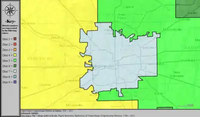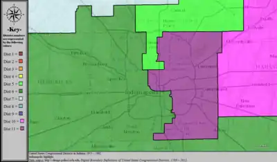 Table of United States congressional district boundary maps in the State of Indiana, presented chronologically.[3] All redistricting events that took place in Indiana between 1973 and 2013 are shown.