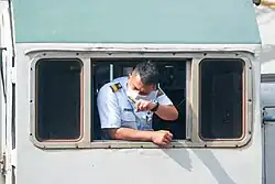 | Semboyan 51 means that the engineer sounds the locomotive horn for every shunting signal given to him by the shunting officer via a mouthpiece, trumpet, or whistle, as a sign that the engineer understands the shunting command. | |