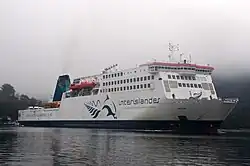Interislander is a road and rail ferry service across New Zealand's Cook Strait, between Wellington in the North Island and Picton in the South Island. It is owned and operated by state-owned rail operator KiwiRail. Two roll-on roll-off (RORO) vessels operate the 50-nautical-mile (93 km; 58 mi) route, taking about three hours to complete the crossing.[1]