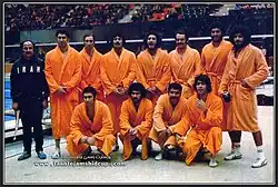 Iran water polo team in 1973 before a friendly match with Egypt. This team won the Asian Games one year later.