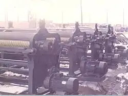 Afterwards, more complicated machinery, such as fleshing machines, were first built in Tabriz. The use of these machines continued until the production of more advanced mechanical and electrical machines. The leather industry in Tabriz started to use one of the most advanced machines built in Iran. Used for splitting[7][8] it was produced by Reza Pourbagheri, of the Techno Machine Company, which was first located in Tehran. Later the company, Hydro Charm emerged and produced other leather processing machines.[9]